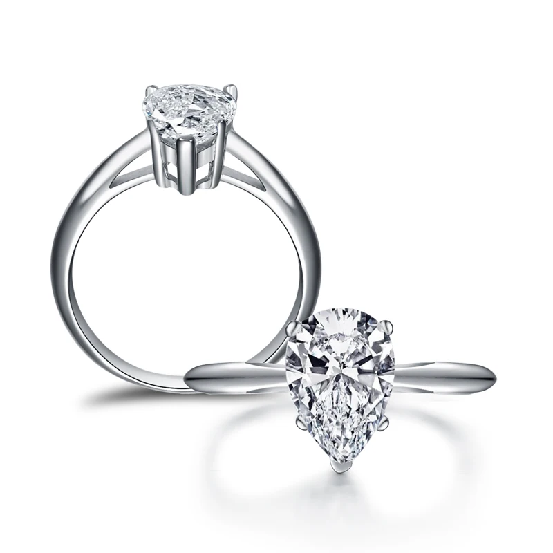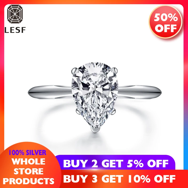 LESF 925 Серебряное кольцо 2 Ct груша для женщин обручальные кольца...