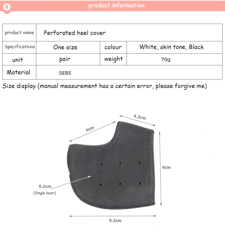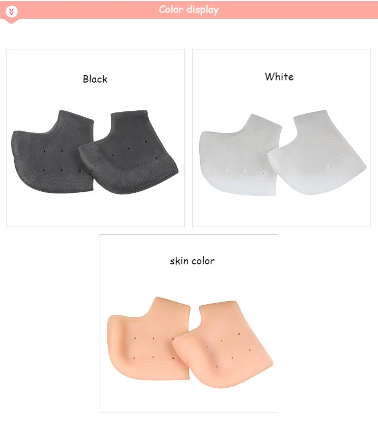 Характеристика:Моющийся, Мягкий медицинский силикон, нетоксичный, предотвращает сухость кожи.Защищает кожу от шелушения и растрескивания. Многоразовые, ручная стирка с теплой водой и мылом, затем сушить на воздухе.В высококонцентрированной, увлажняющей и смягчающей основе, чтобы сохранить вашу пятку мягкой и кожиАктивно помогает восстанавливать потрескавшуюся кожу с питательным сочетанием увлажняющих свойств.Идеально подходит для людей, которые стоят или ходят долго в день, как безопасность, учителя, медсестры, салемен и т. Д.Транспорт: отправлено в течение 48 часов