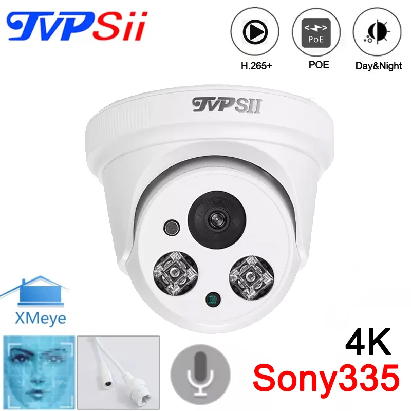 Два массива инфракрасных светодиодов Пластиковые 8MP 4K, 5MP Sony335 H.265 + Внутренняя аудиосистема Onvif Обнаружение лица Купольная камера POE IP CCTV