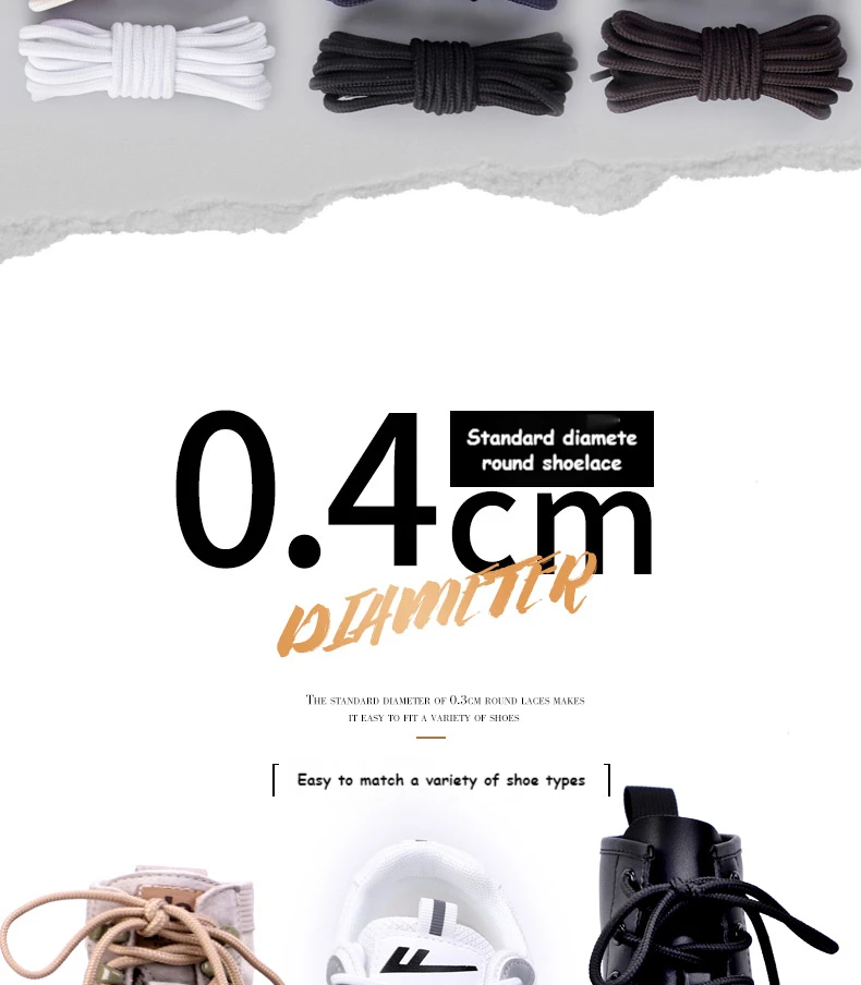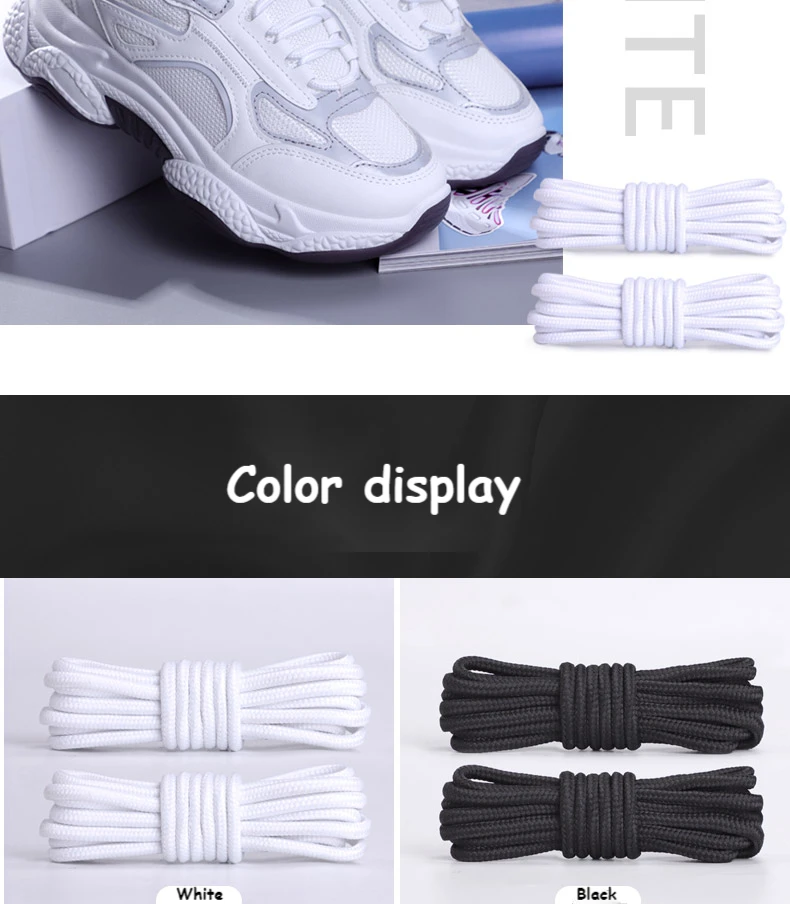 Шнурки круглые однотонные классические, 90120150 см, 21 цвет