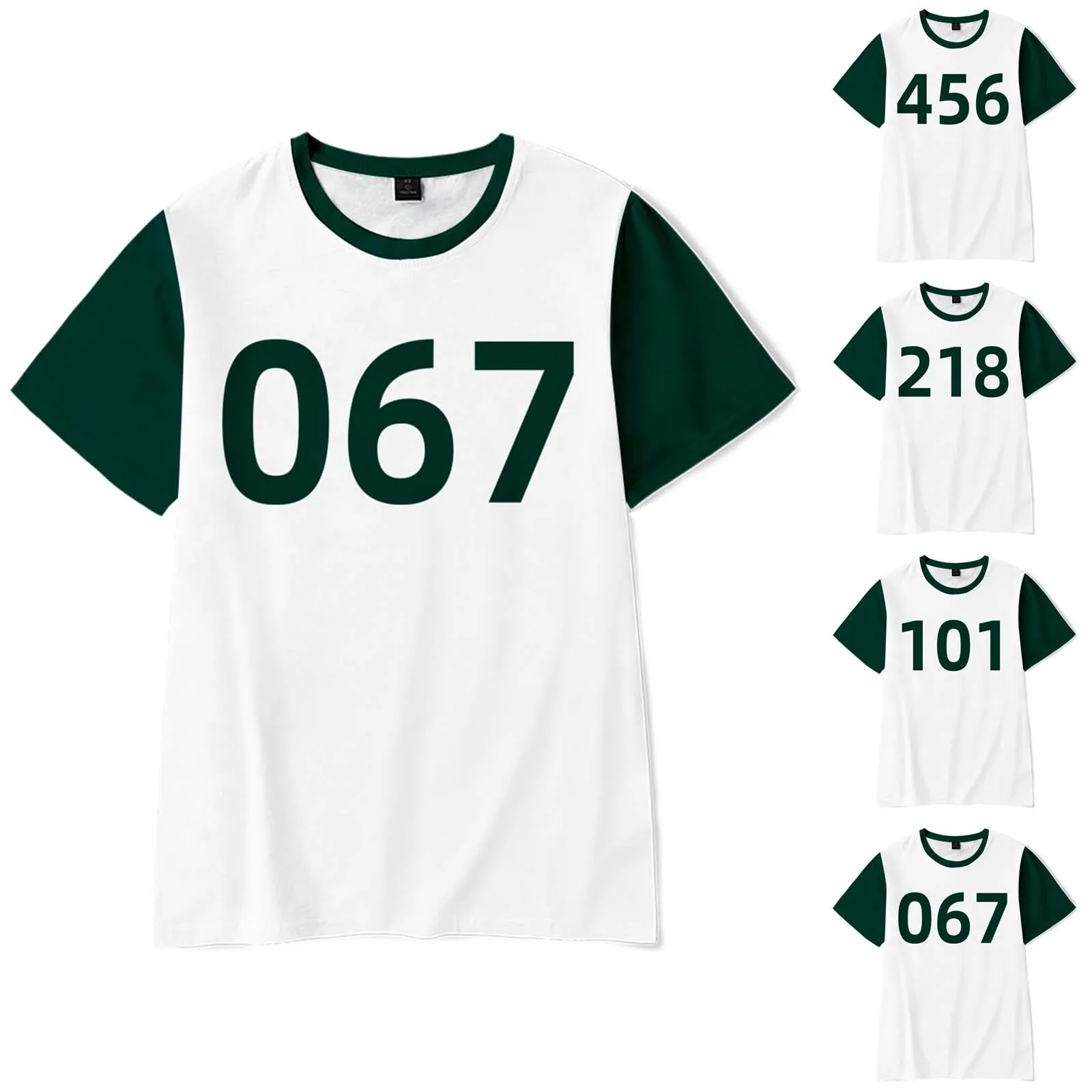 Костюм игры кальмар 2021 популярный корейский ТВ 456 218 001 067 240 футболки с номером унисекс для мужчин и женщин футболки