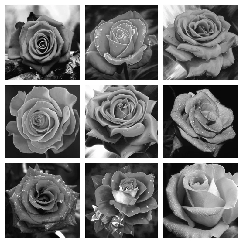 Алмазная живопись, цветок, черно-белая роза, 5d, мозаика сделай сам, полностью квадратная, алмазная вышивка Стразы, алмазная вышивка, картины