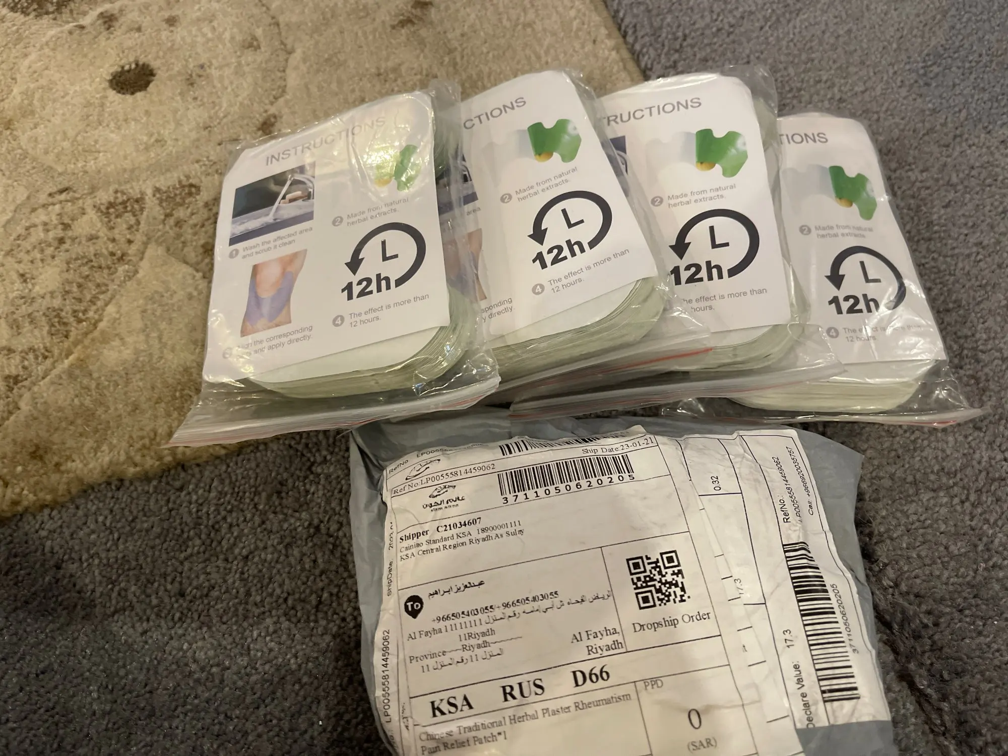 Доставка заняла 21 день. Получал в пункте выдачи от KazanExpress. Пластырь внутри упакован в зип пакет, а снаружи в обычный почтовый непрозрачный полиэтиленовый пакет. Упаковка целая, повреждений нет. К пластырям имеется инструкция на английском языке с картинками, так что проблем в применении нет. Пахнут травами. Тепло от пластыря ненавязчивое, приятно греет колено.