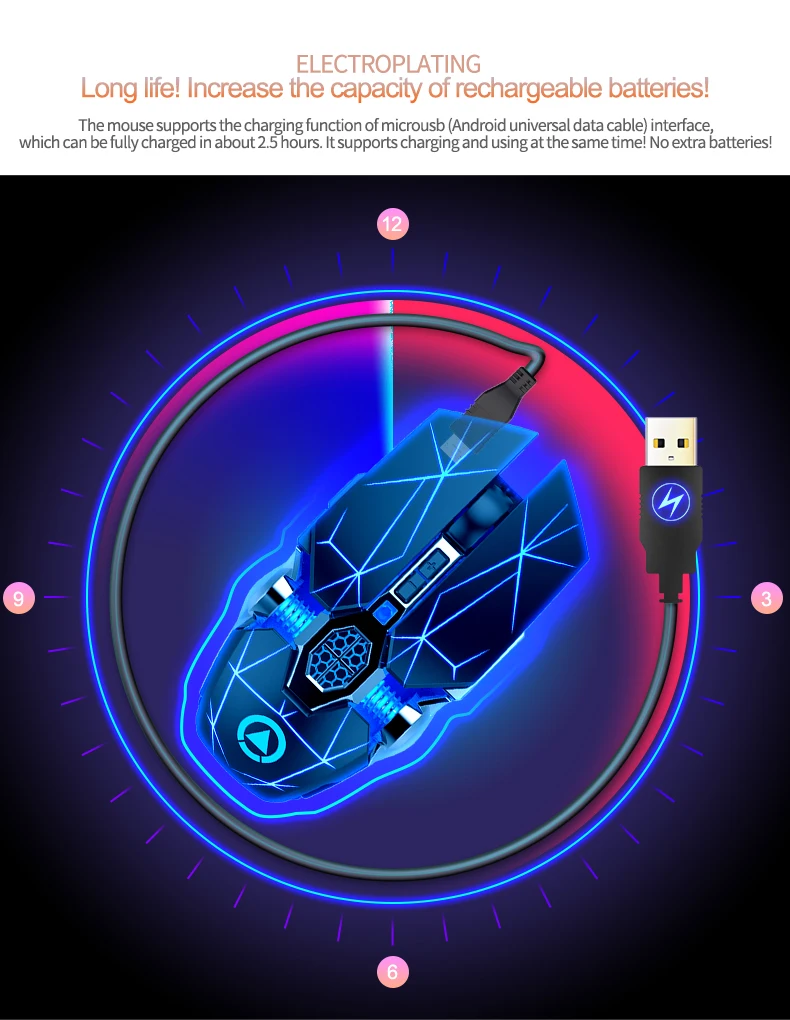 Игровая мышь Беспроводная оптическая 2. 4G USB Беспроводная мышь 1600D PI 7 цветов светодиодный RGB с подсветкой перезаряжаемая Бесшумная мышь эргономичная