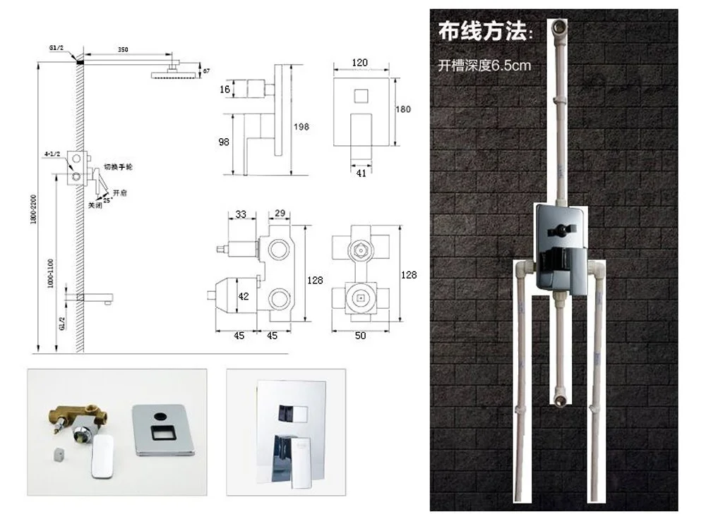 Одна ручка квадратной формы твердая латунь настенное крепление смес...
