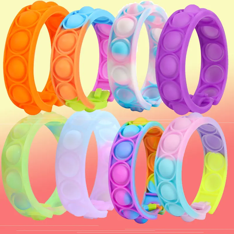 Поп-пузырьки, простая игрушка, антистресс, снятие стресса, красочный силиконовый браслет, тревожность, сенсорные игрушки для аутизма, СДВГ, дети