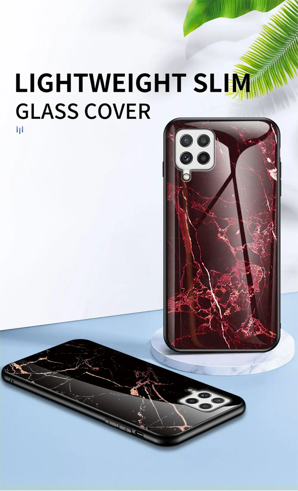 Чехол из закаленного стекла для Samsung Galaxy M22, с мраморным принтом и мягким покрытием из ТПУ для Samsung M22