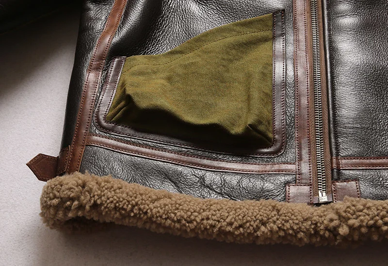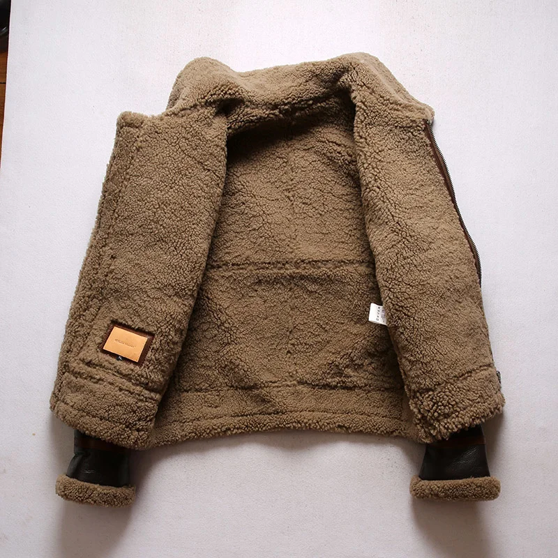 2021 Коричневое Пальто из натуральной овчины, Мужская зимняя теплая куртка-бомбер B3 в стиле милитари, реальная натуральная овчина размером 6XL