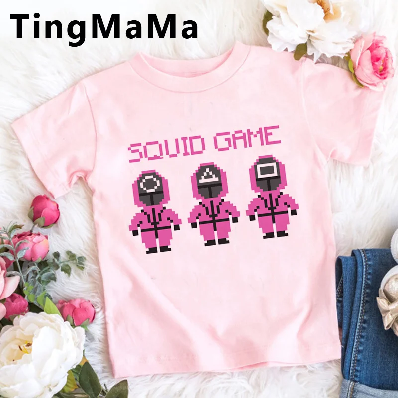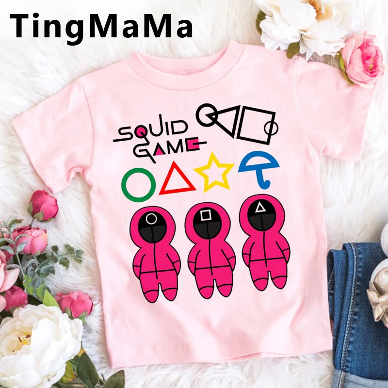 Детская футболка для подростков с принтом игры кальмар, летняя граф...