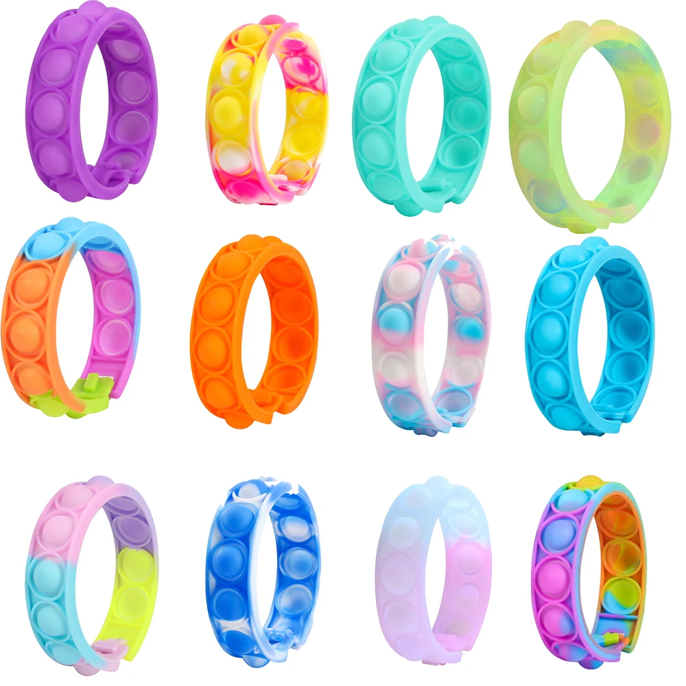 Поп-пузырьки, простая игрушка, антистресс, снятие стресса, красочный силиконовый браслет, тревожность, сенсорные игрушки для аутизма, СДВГ, дети