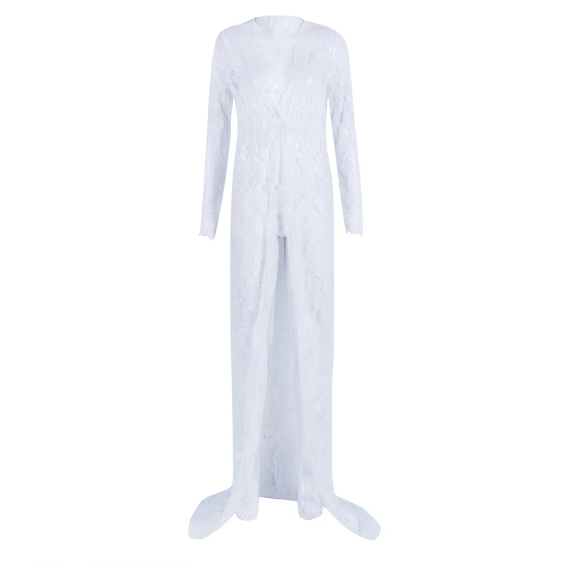 Летнее женское длинное платье с разрезом спереди, черно-белое кружевное платье для беременных, кружевное платье, реквизит для фотосъемки, Прозрачное платье