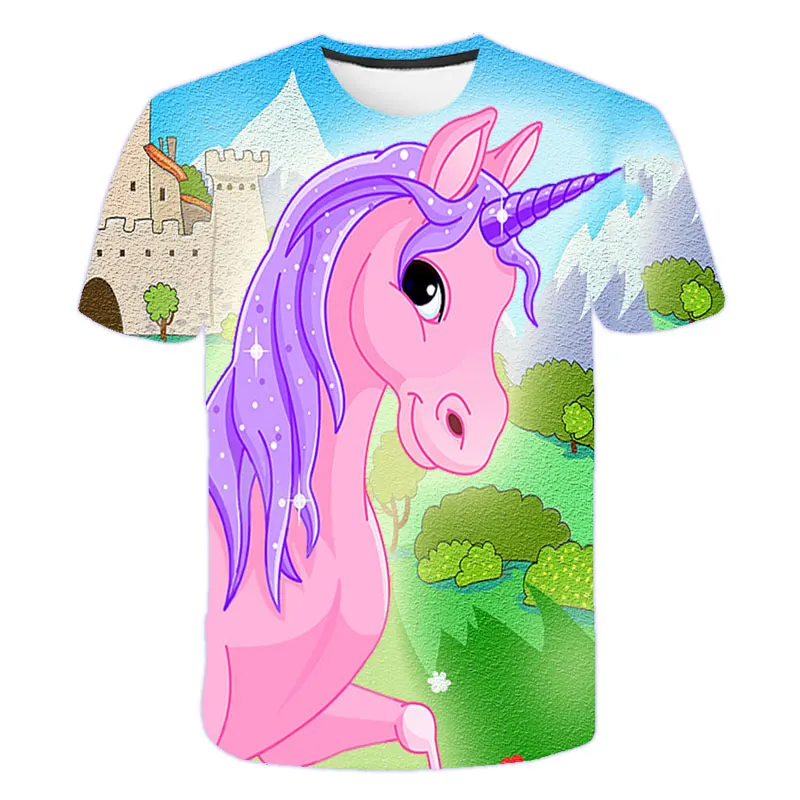 Футболка с единорогом для девочек, футболка с мультяшным 3d-анимационным рисунком, 3,4,5,6,7,8,9,10,11,12,13,14, лет, совершенно новая