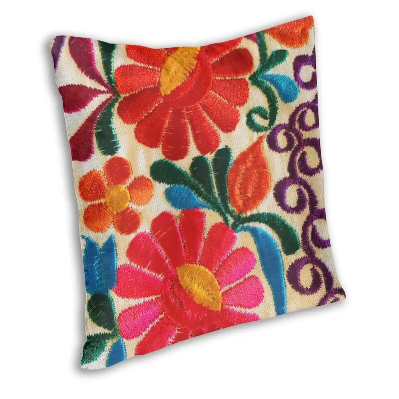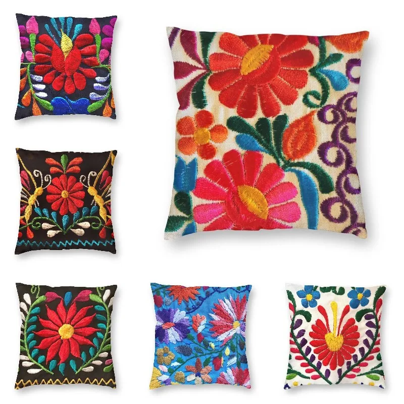 Пользовательские мексиканские цветы вышивка искусство Подушка Чехол домашний декоративный текстиль Цветочный фольклорный чехол для подушки для украшения гостиной