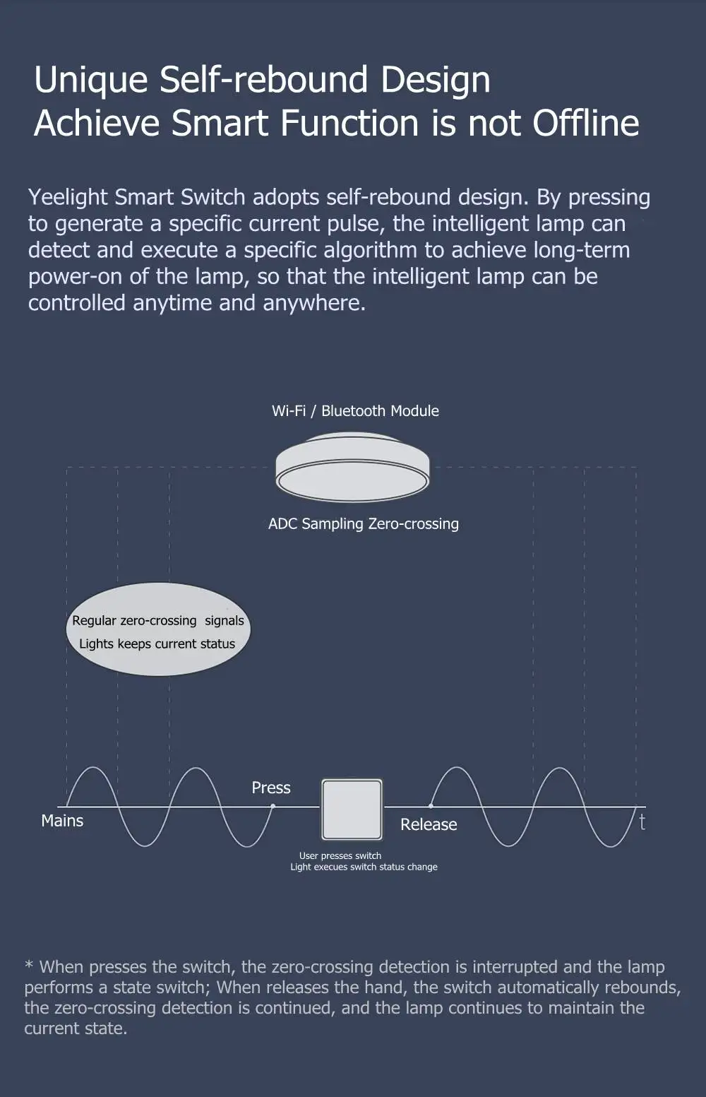 Умный настенный переключатель Yeelight с самовозвратным дизайном, п...