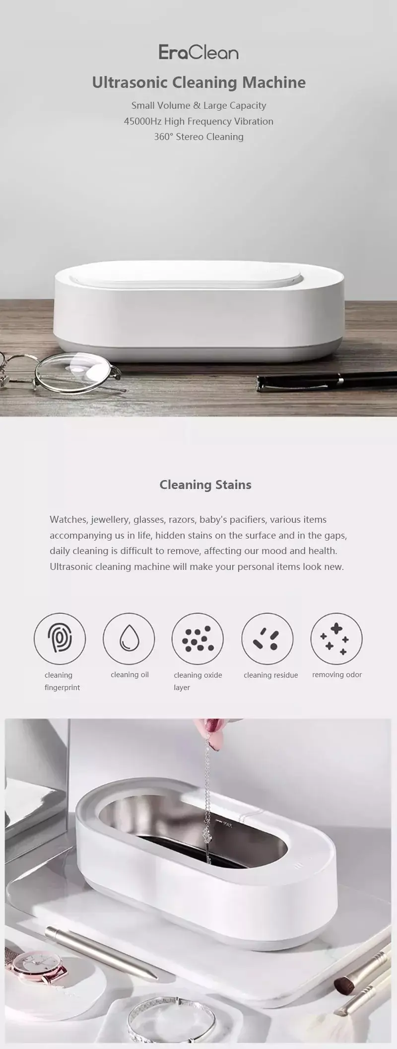 EraClean Ультразвуковой очиститель 45000 Гц, высокочастотная вибрац...