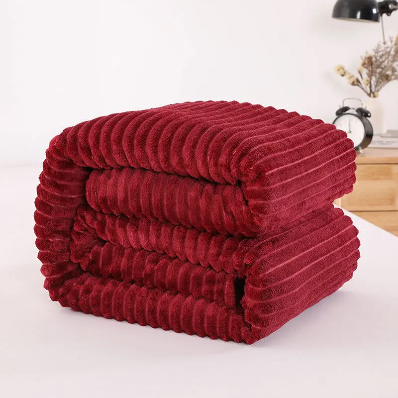 Одеяла для кроватей Однотонное полосатое одеяло из кораллового флис...