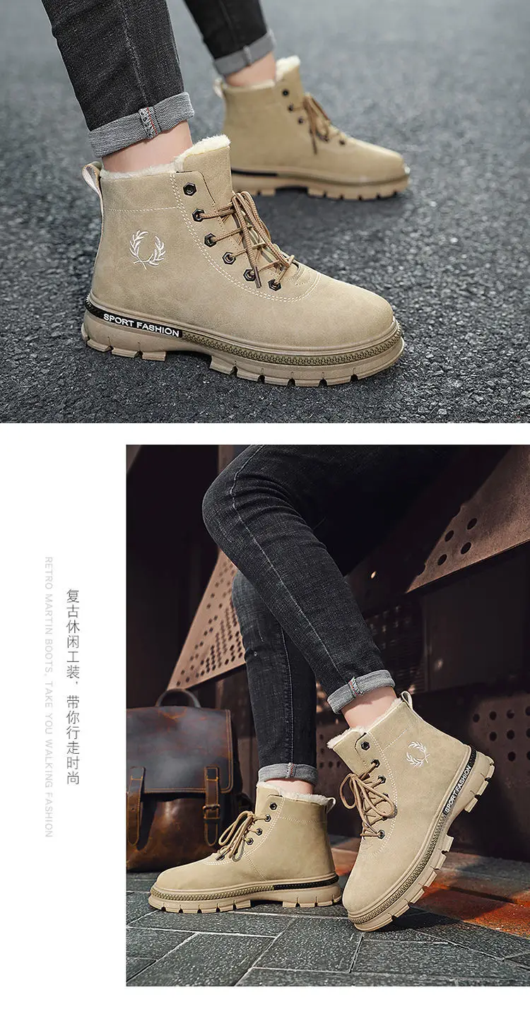 Мужские зимние теплые и бархатные ботинки на толстой подошве, новинка 2021, мужские удобные и безопасные спортивные хлопковые ботинки для отдыха