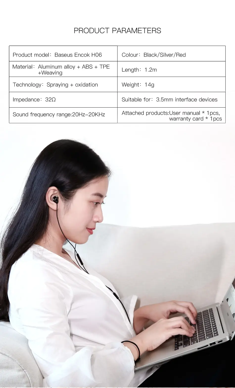 Наушники-вкладыши Baseus Encok H06 lateral in-ear Wired Earphone (NGH06-01, NGH06-09, NGH06-0S)