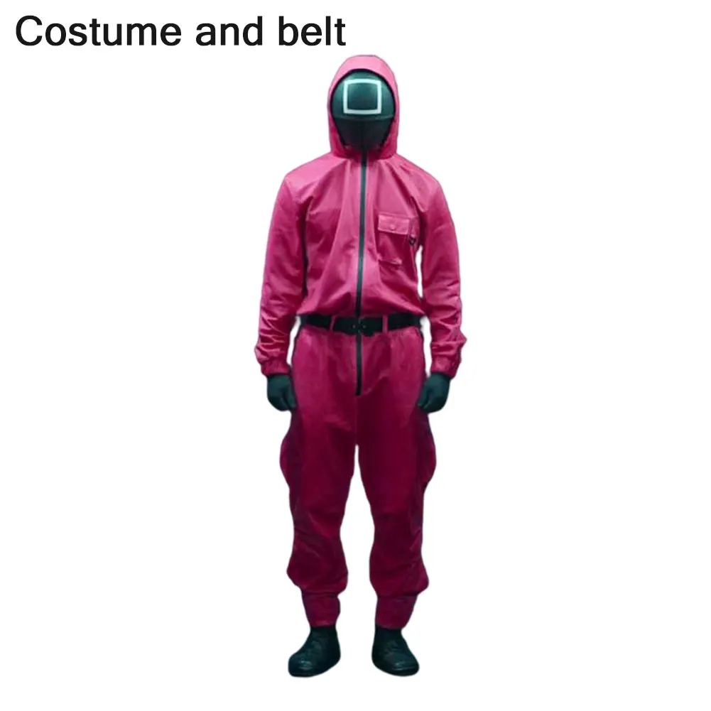 Корейский Костюм для костюмированной вечеринки в стиле ТВ и игры кальмара, красный комбинезон, перчатки, пояс на Хэллоуин, Вечерние Маски для лица, набор из 4 предметов для мужчин, круглый костюм из шести предметов, одежда для ролевых игр