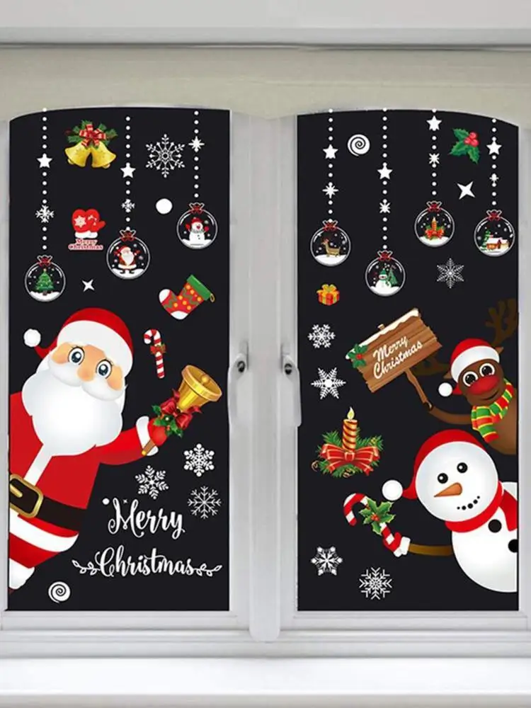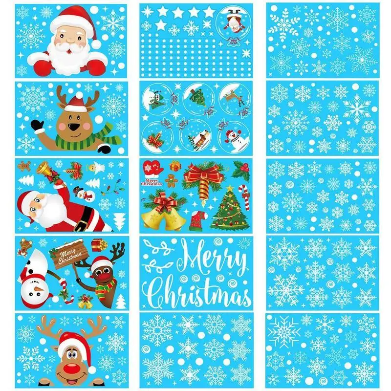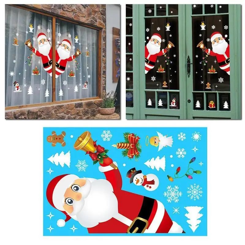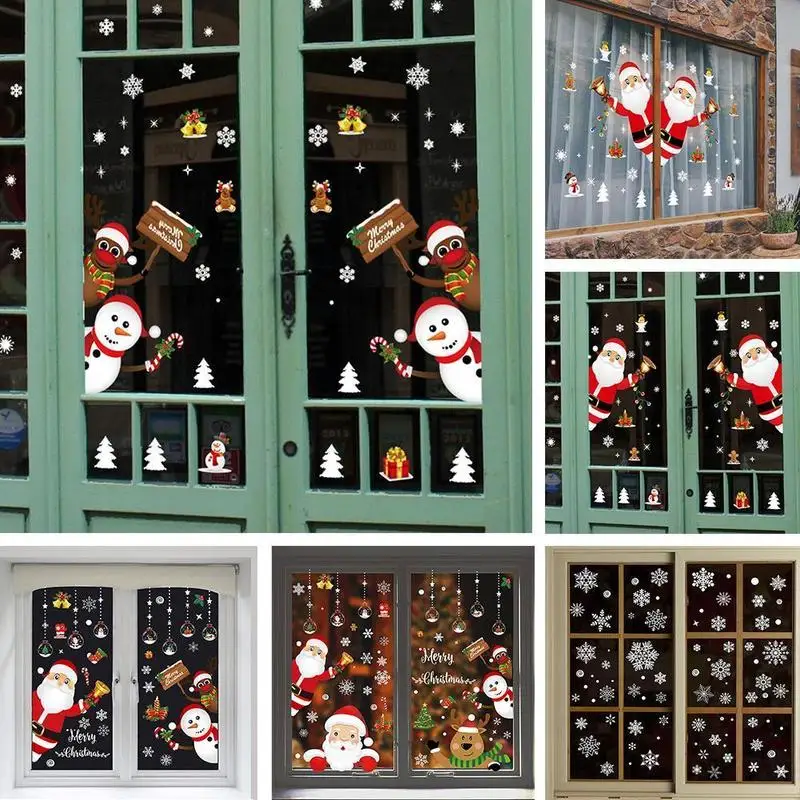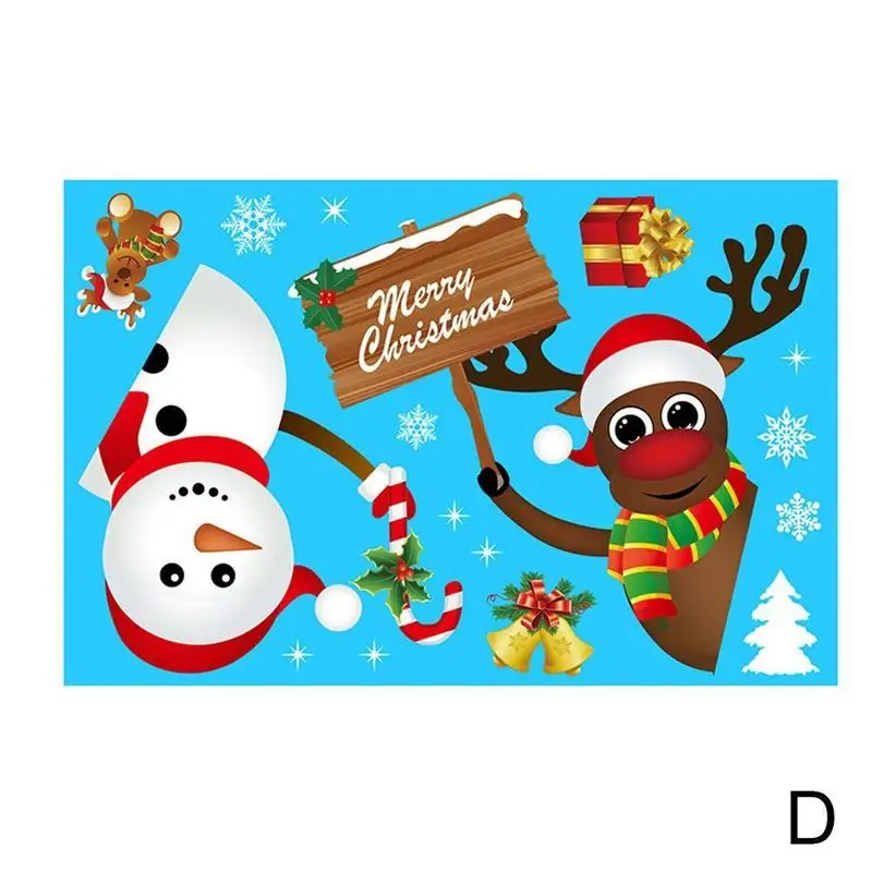 Рождественская Наклейка на окно на стену, Санта-Клаус, олень, 2022 год, Рождество, статическое стекло, украшение, новая наклейка, наклейки на окна для дома I9d2