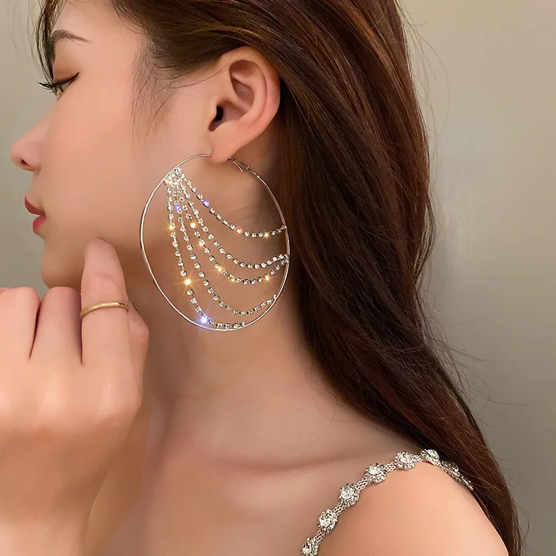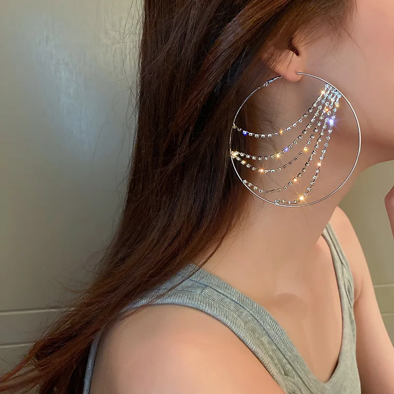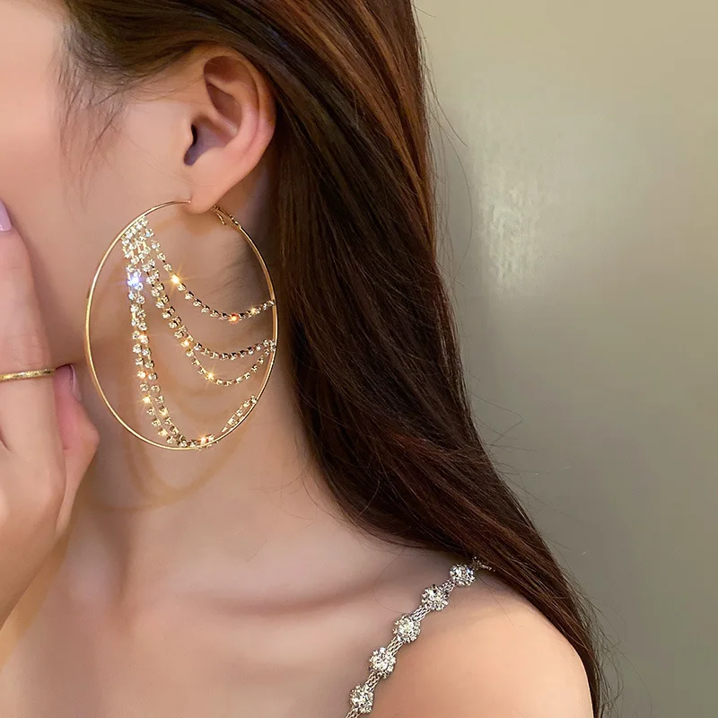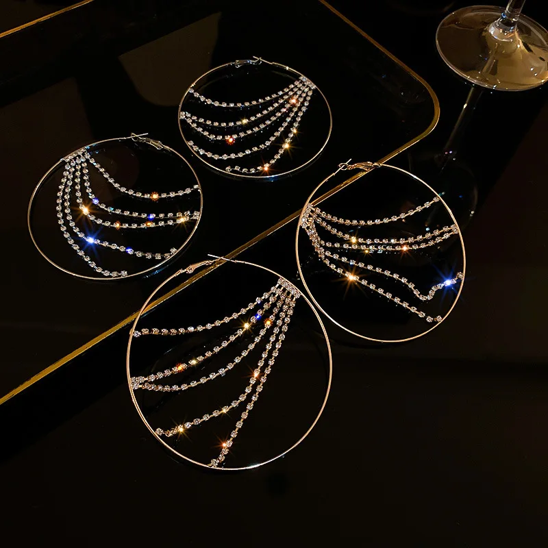 Женские серьги-кольца XIALUOKE Hyperbole, металлические круглые серьги-кольца с кристаллами, винтажные массивные ювелирные изделия