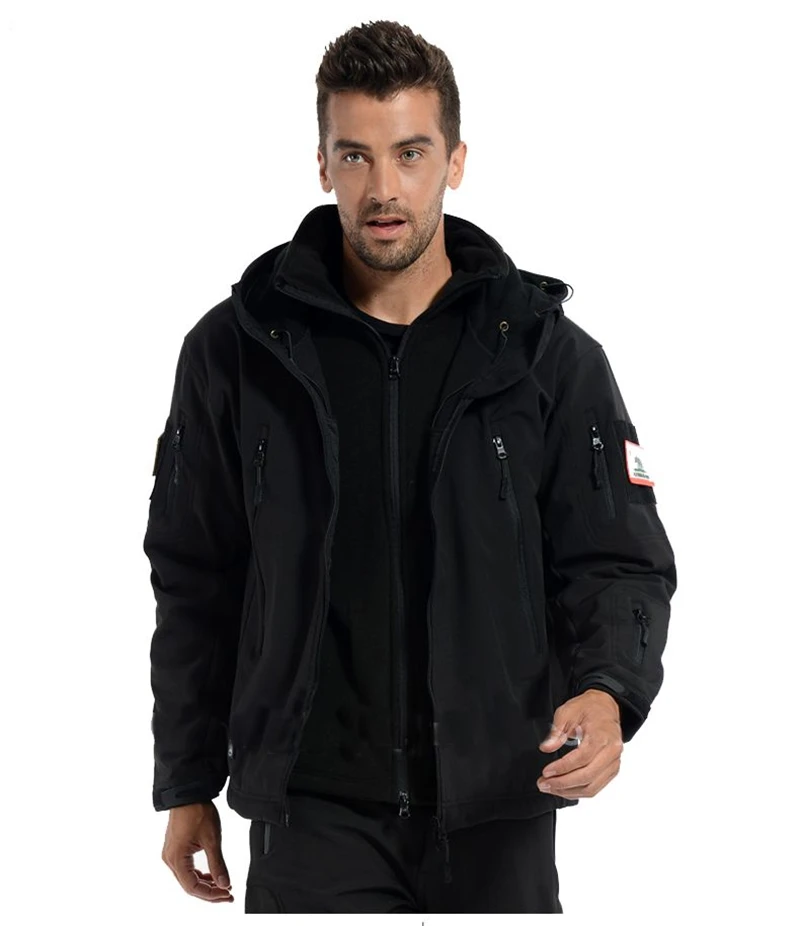 Мягкая Военная тактическая куртка из кожи акулы, Мужская водонепроницаемая ветровка, зимнее теплое пальто, камуфляжная армейская камуфляжная одежда с капюшоном