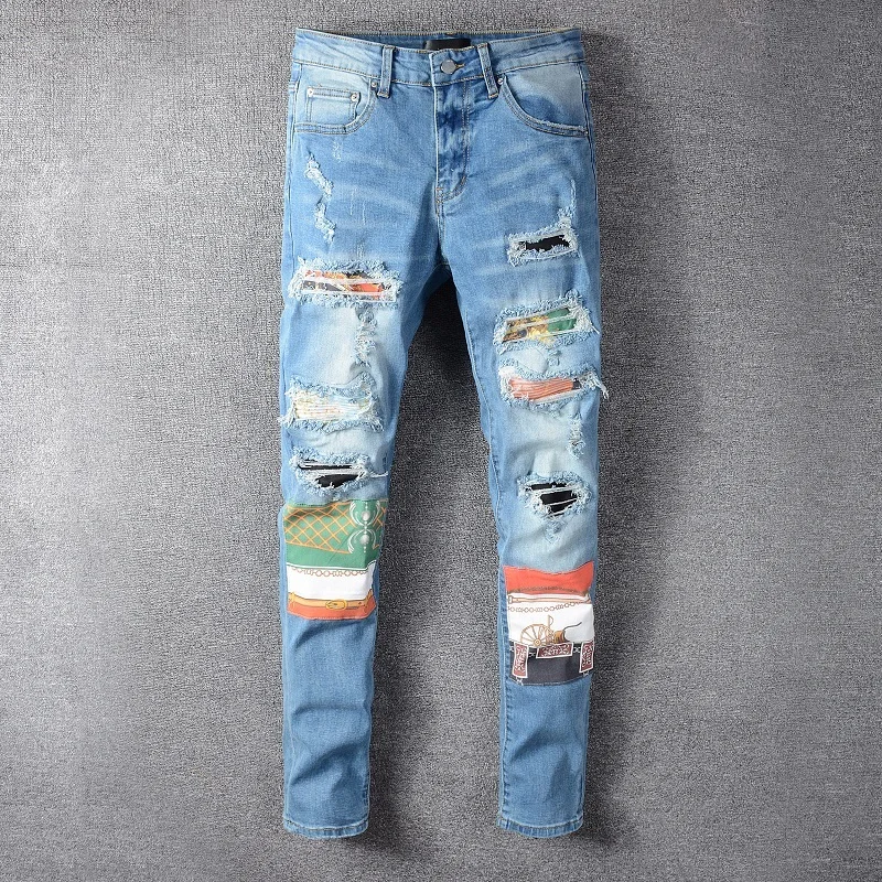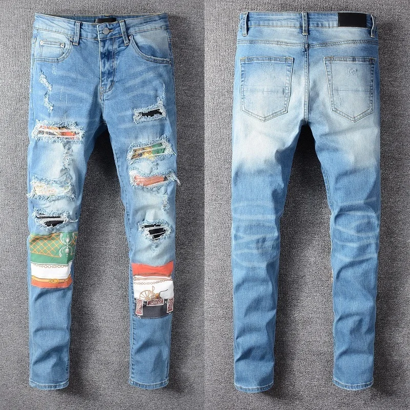 2021 новые модные брендовые женские и мужские джинсы в стиле High Street, облегающие высокопрочные эластичные узкие джинсы с поясом #652
