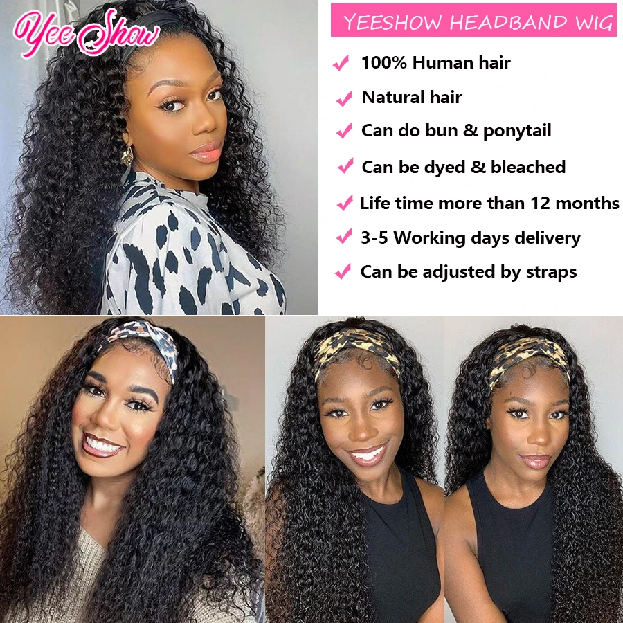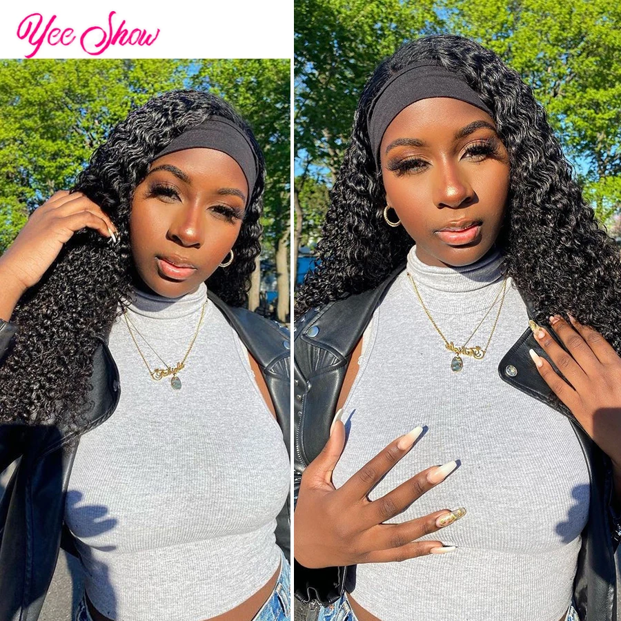 Бесклеевой парик с головной повязкой 100% парики из натуральных вол...
