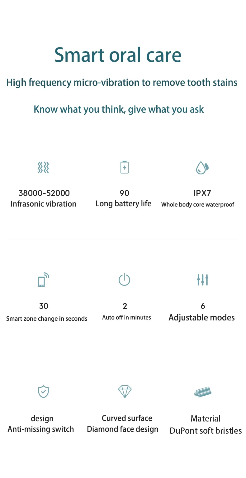Brush head materialDuPont medium soft bristles cleaning mode