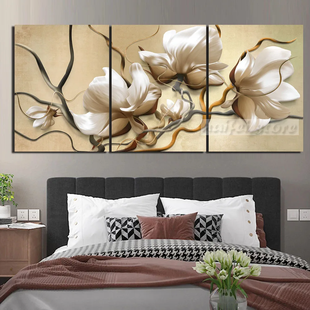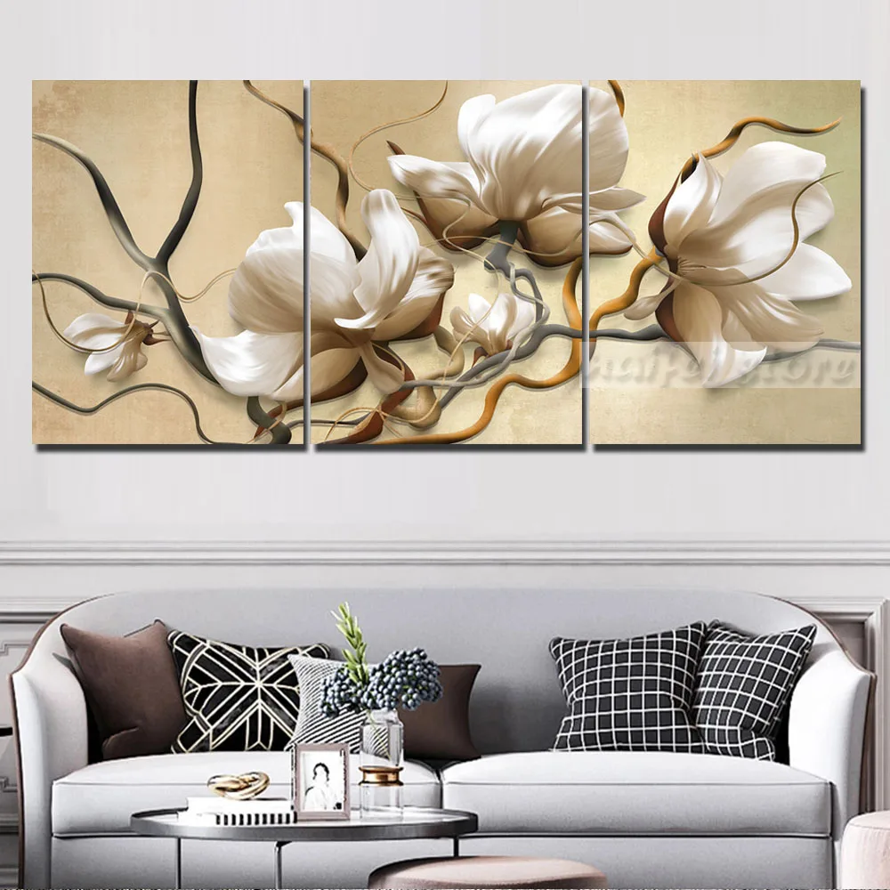Цветок бежевый 5d diy Алмазная картина новый 5d Алмазная мозаика полный квадратный Круглый Алмаз вышивка 3 шт/набор Магнолия лучший подарок