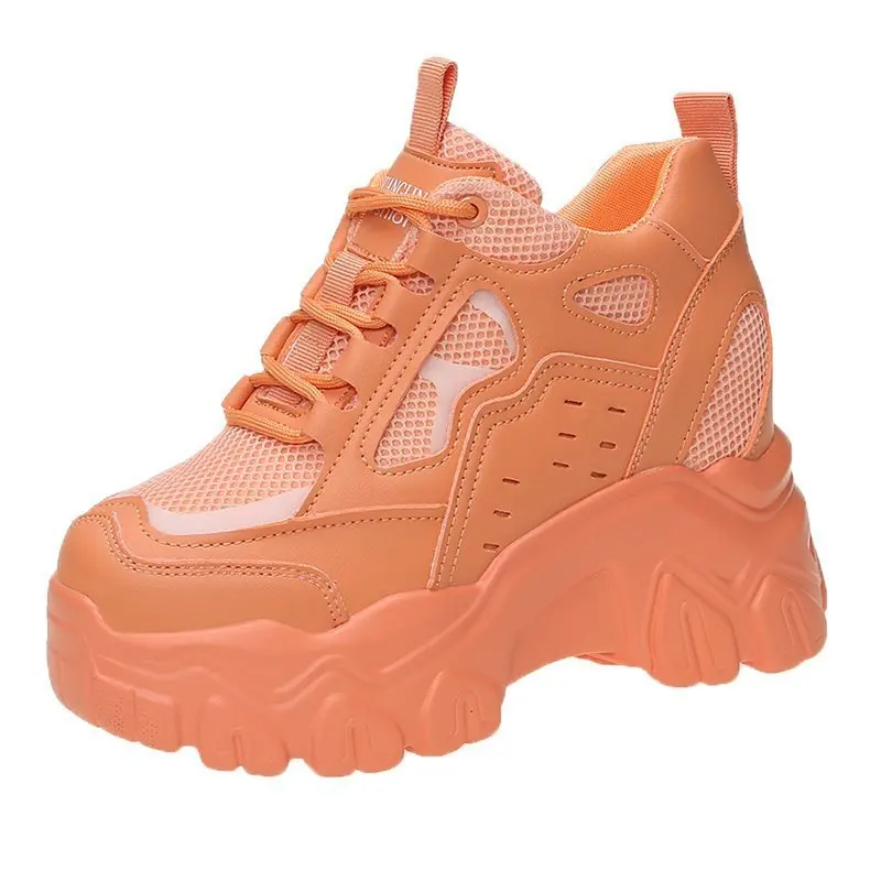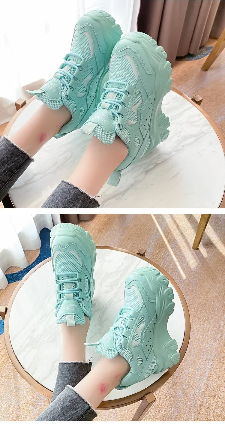Женская обувь на каблуке, визуально увеличивающая рост; Цвет белый, зеленый; Спортивная обувь; Новинка 2022 года; Сетчатые дышащие модные Универсальные повседневные кроссовки для женщин