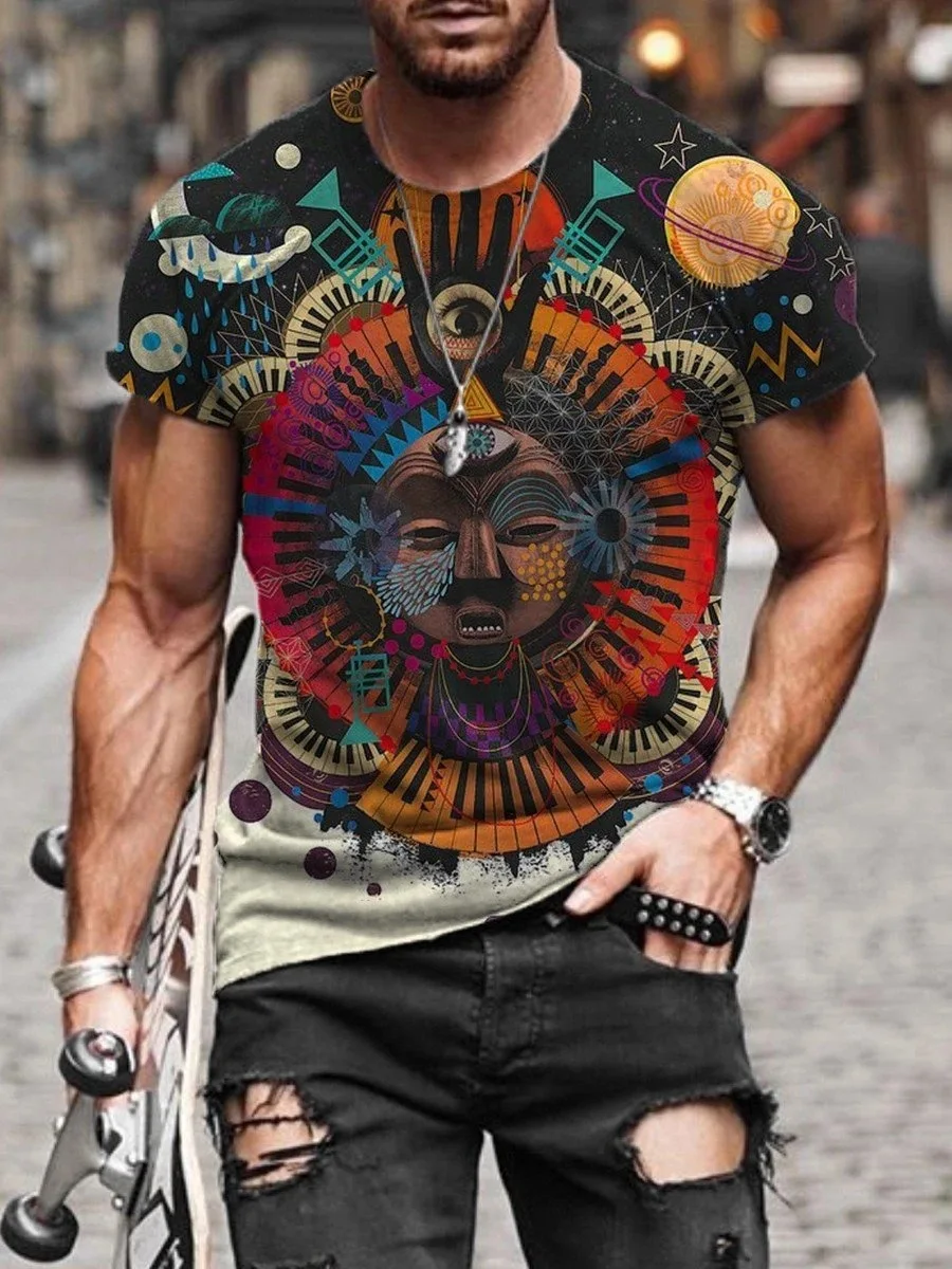 Футболки мужские, большого размера, с этническим принтом, с круглым...