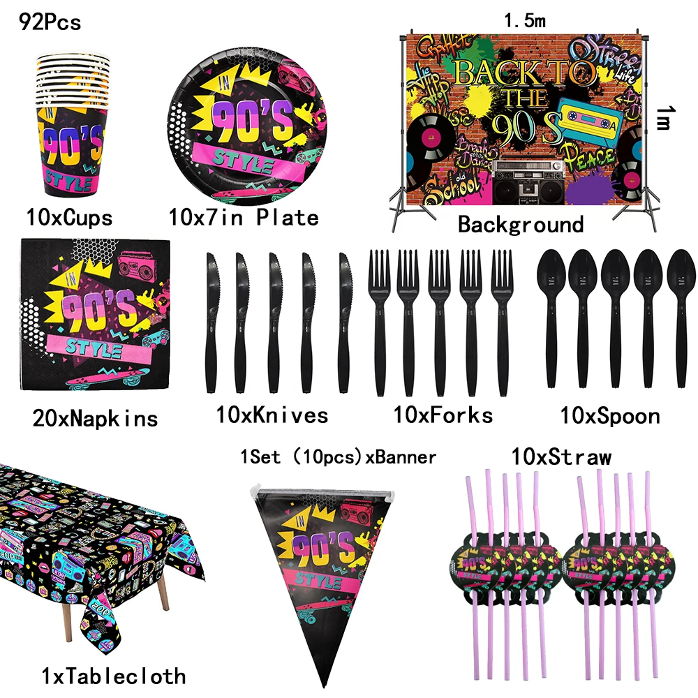 Бумажные тарелки для украшения дня рождения 90-х годов, бумажные салфетки, чашки в 90-е, Настольная Обложка для свадебной вечеринки, товары в стиле хип-хоп 1920-х годов