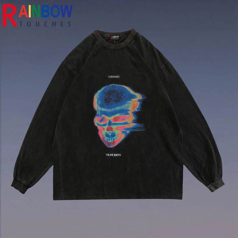 2021 New Long Sleeve T-shirt Unisex High Street Retro Graffiti Loose Casual