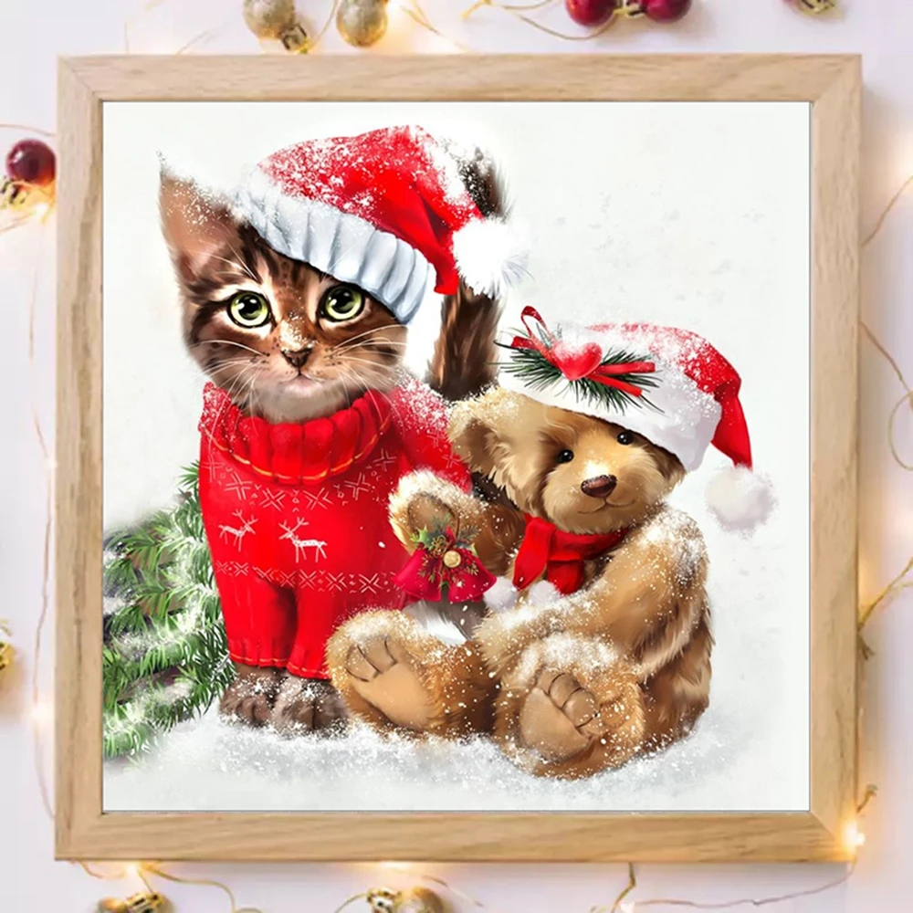 5D полностью круглая Рождественская алмазная живопись своими руками, милая кошка, медведь, вышивка крестиком, мозаика Стразы, домашний декор с рамкой, подарки