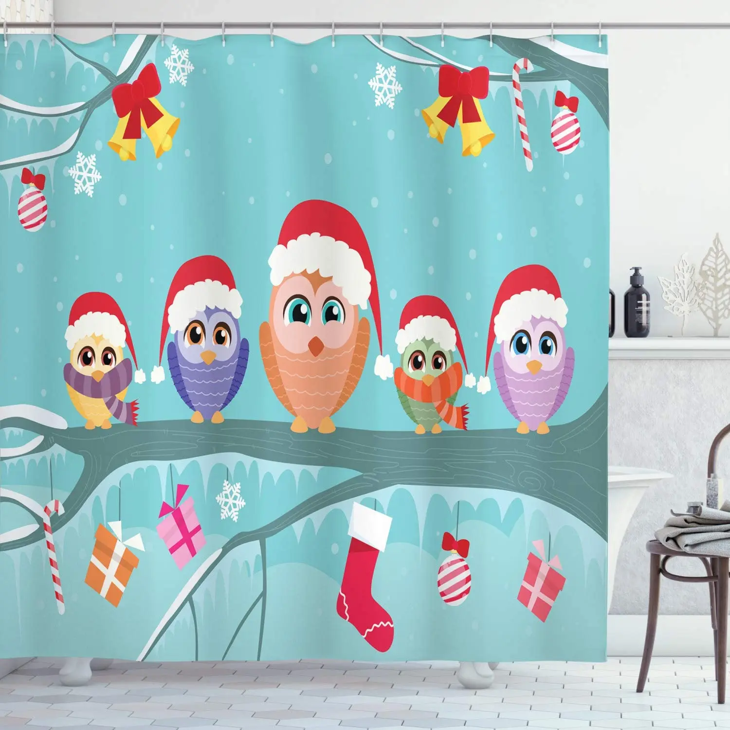 Занавеска для душа из полиэстера, с принтом на новый год, Рождество...