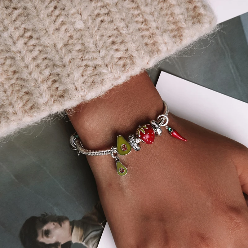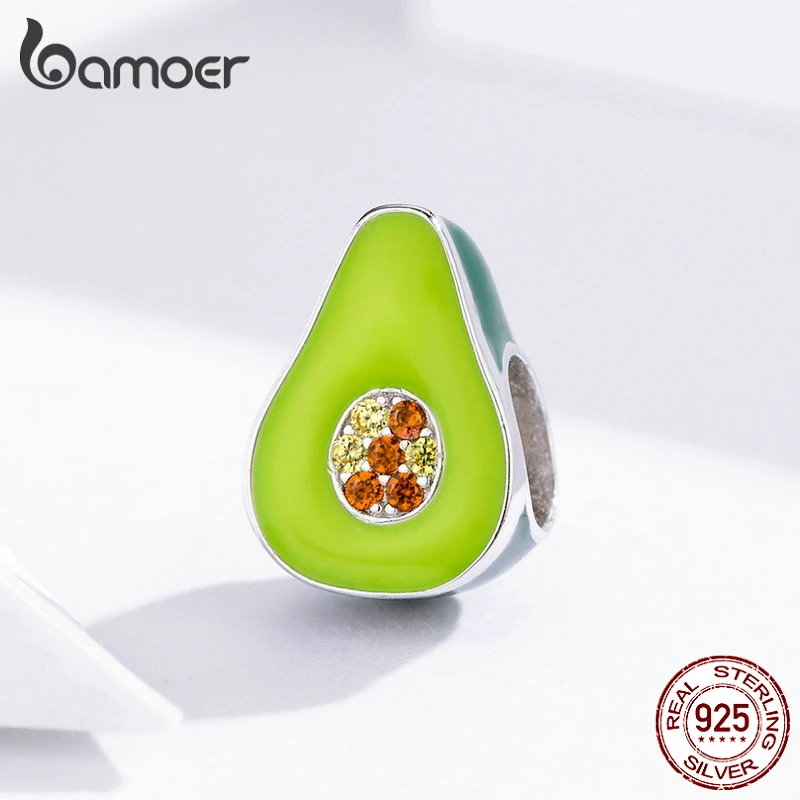 bamoer 925 пробы серебро для женщин зеленый авокадо эмаль бусины Шарм кулон для браслетов и ожерелий ювелирные украшения