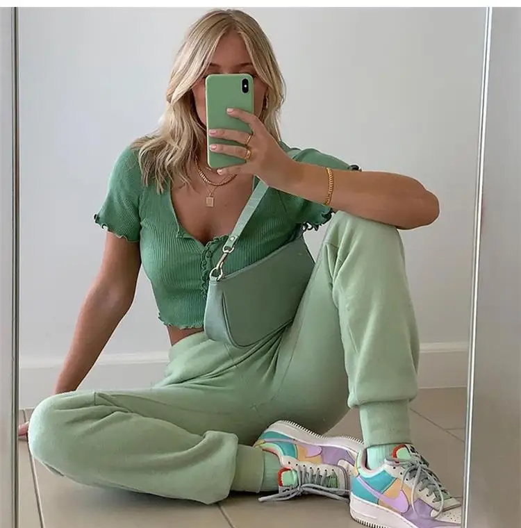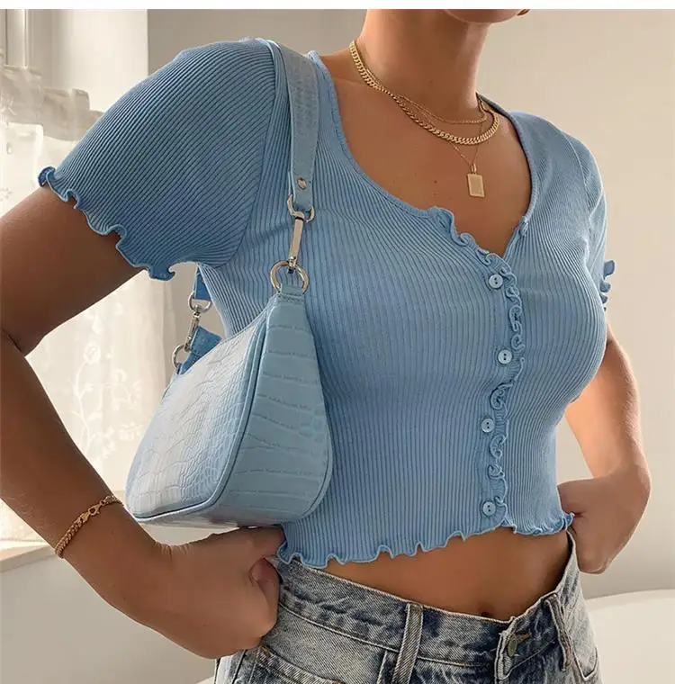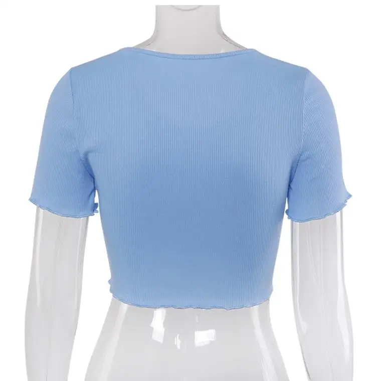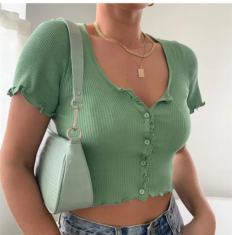 Женский укороченный топ на пуговицах, однотонный трикотажный топ с ...