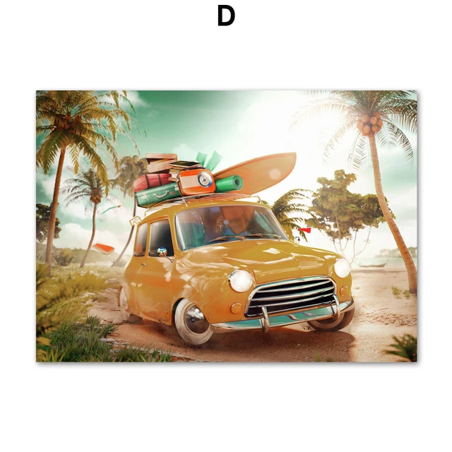 Пляжная Пальма кокосовое дерево Морская звезда доска для серфинга морской пейзаж настенная Картина на холсте скандинавский постер для гостиной домашний декор