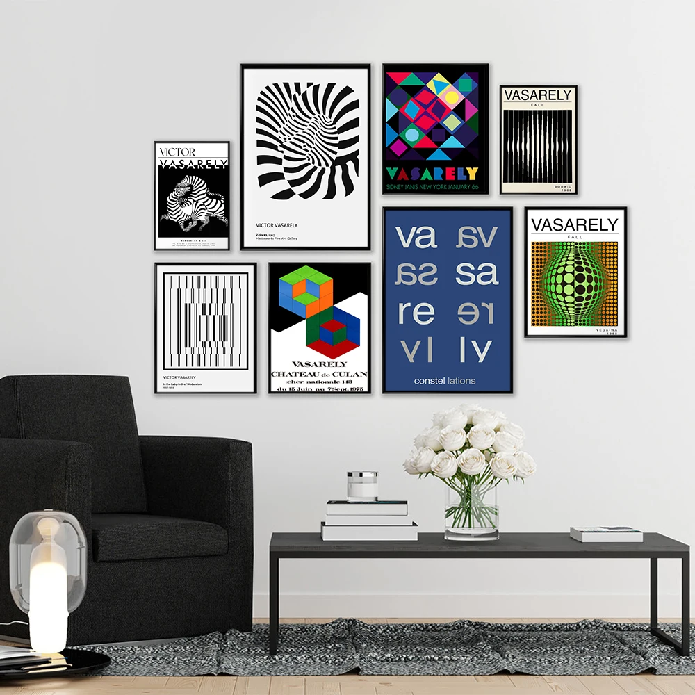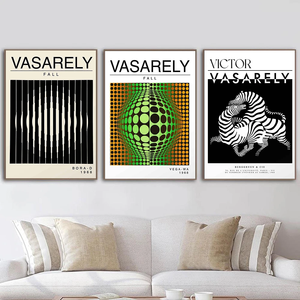 Художественный постер Виктора васари, иллюзия, черно-белый абстрактный геометрический принт, оптический декор для стен гостиной, коридора