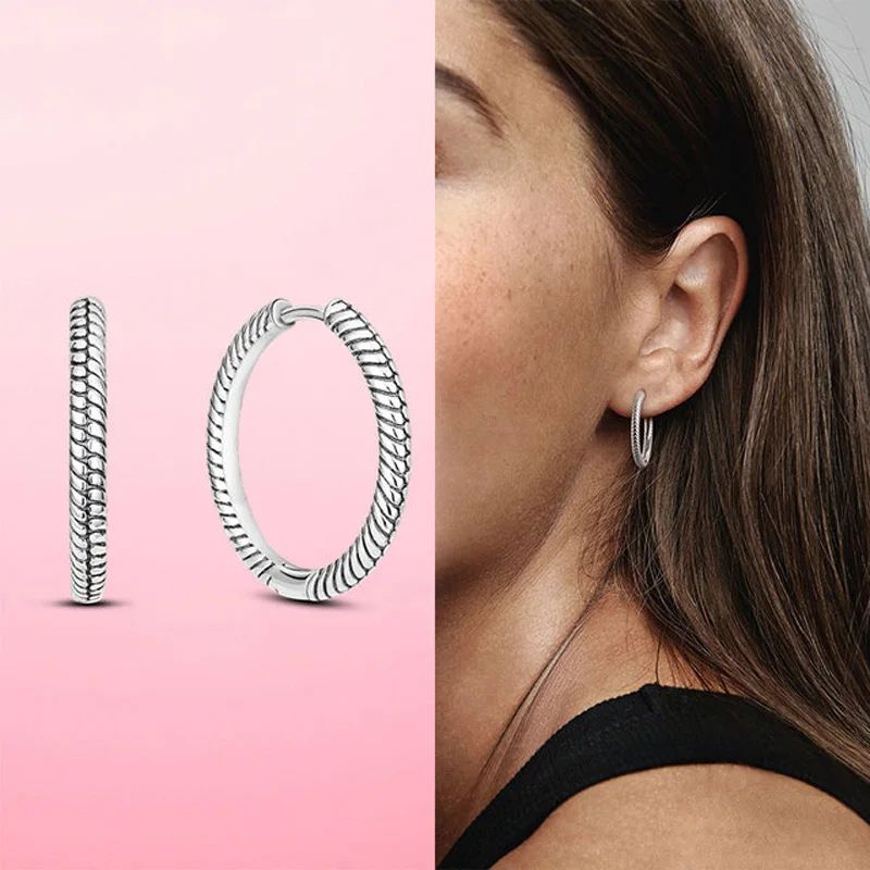Женские серьги-кольца из серебра 925 пробы, с шармами Pandora