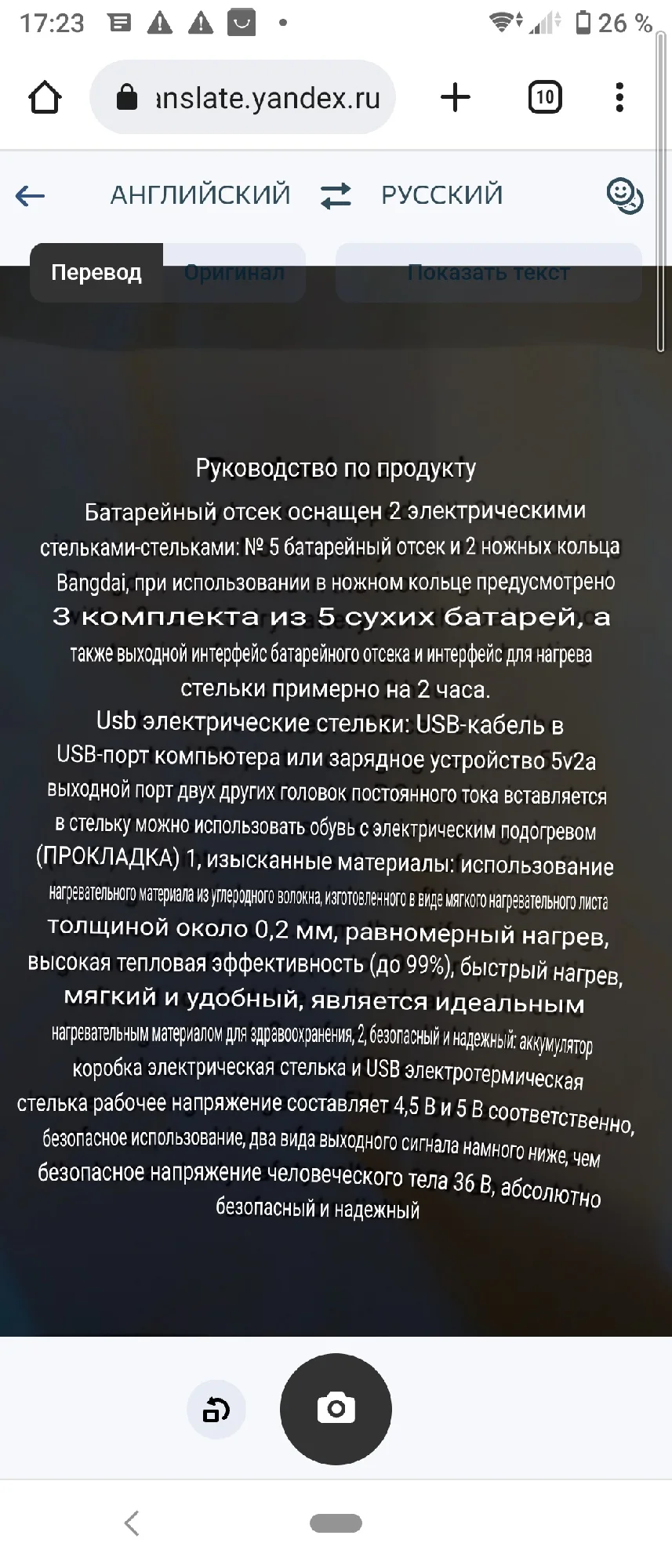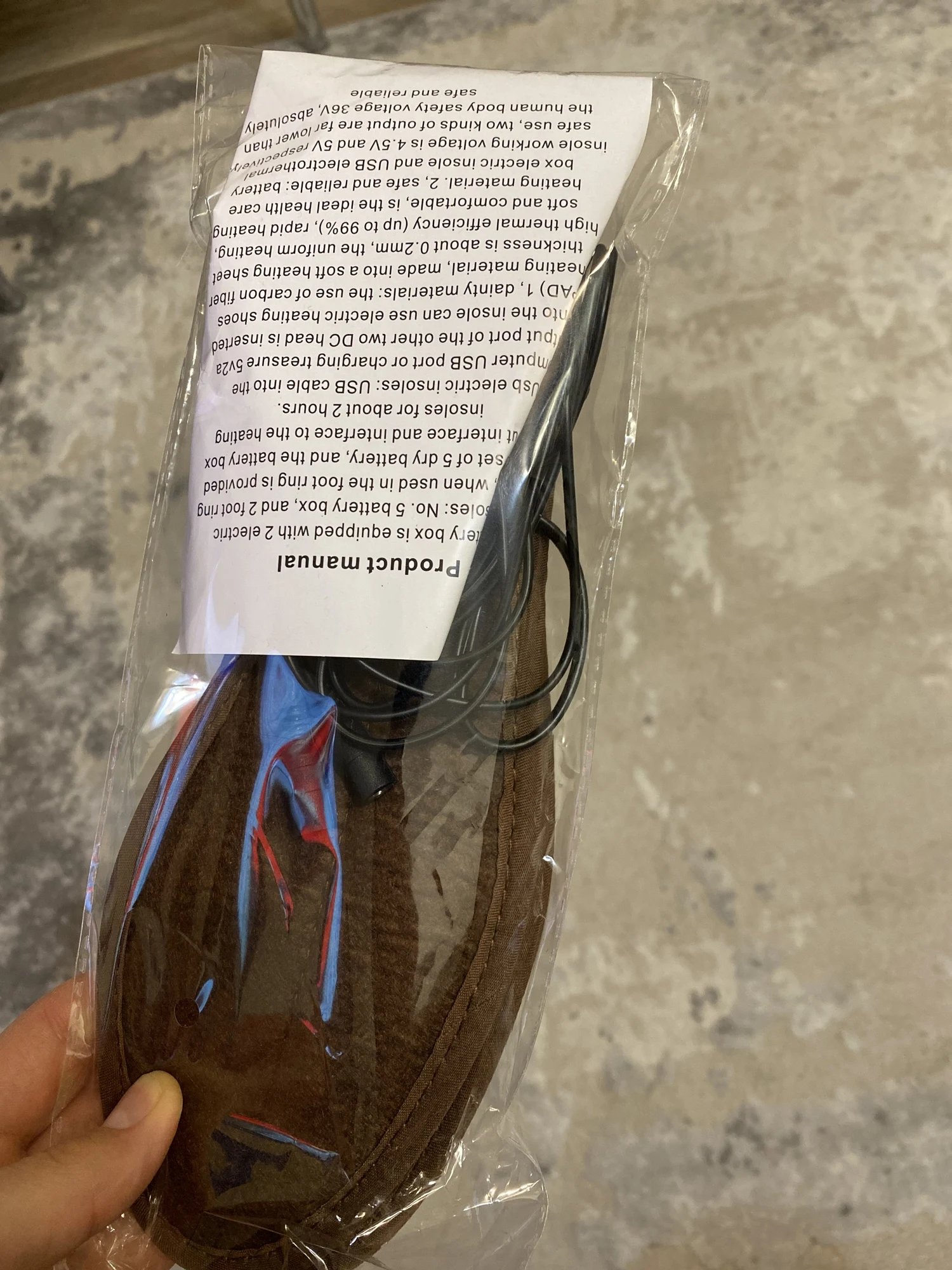 Стельки пришли в Екатеринбург быстрее чем обещал продавец, за 1 месяц. Проверил подключив к power bank всё работает, стельки нагреваются. Смущает только текст инструкции вложенной вместе со стельками. Продавца рекомендую. Перевод инструкции прикладываю.