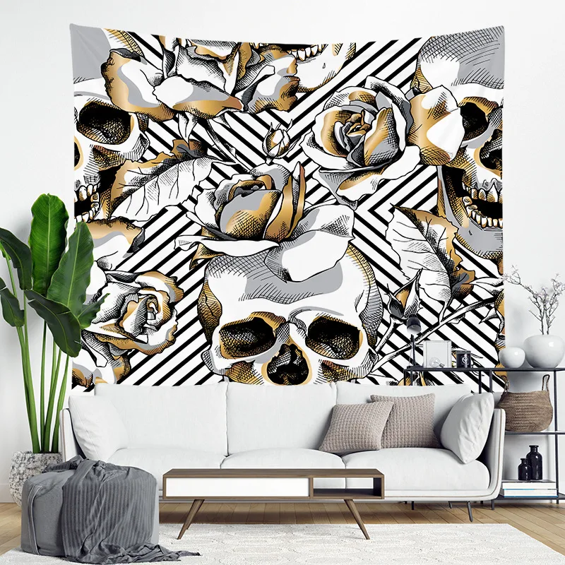 Черно-белый гобелен в виде черепа, товары для макраме, настенный подвесной гобелен в стиле бохо, декоративный гобелен, настенные подвесные гобелены