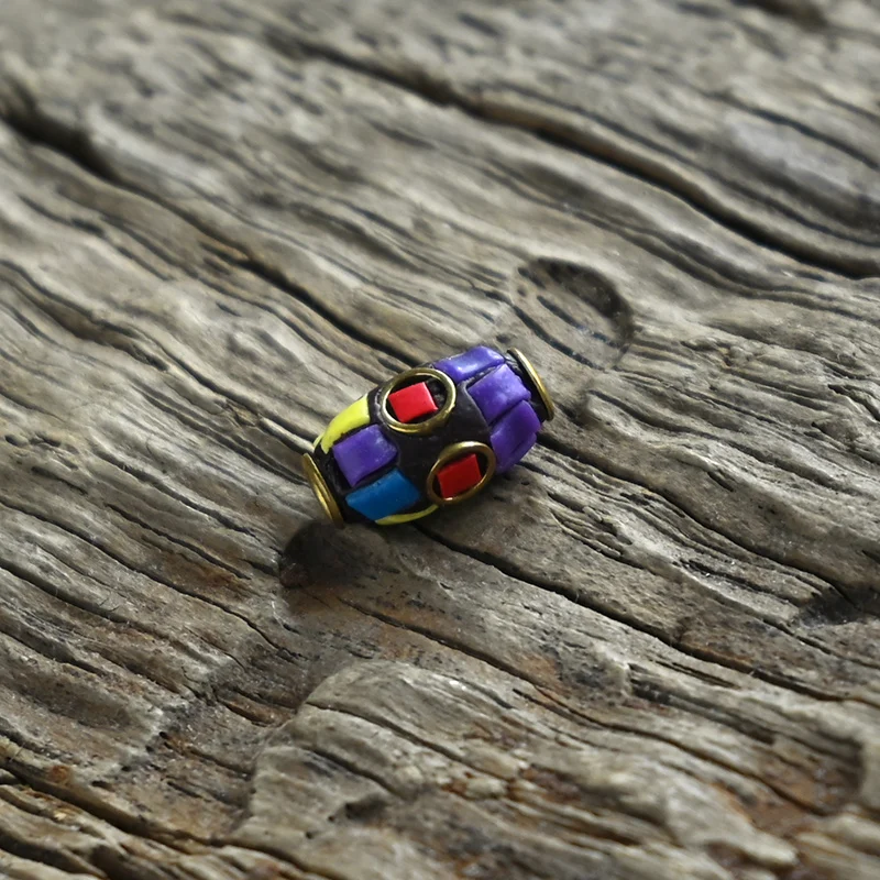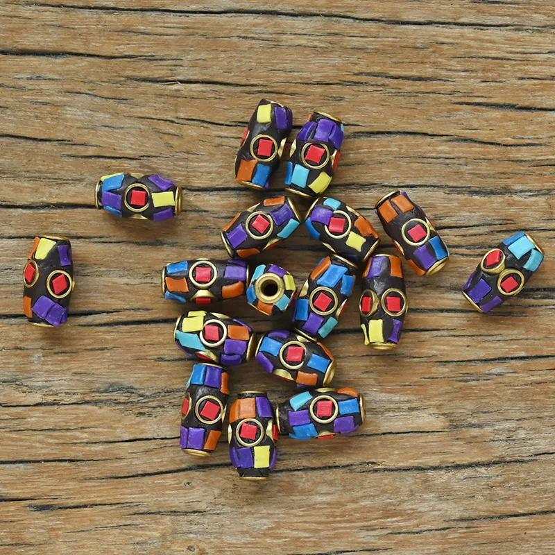 _ Латунные бусины ручной работы из Непала для поделок своими руками для изготовления ожерелий и ювелирных изделий, аксессуары для изготовления глины, инкрустированные цветными цилиндрическими 6x12 мм