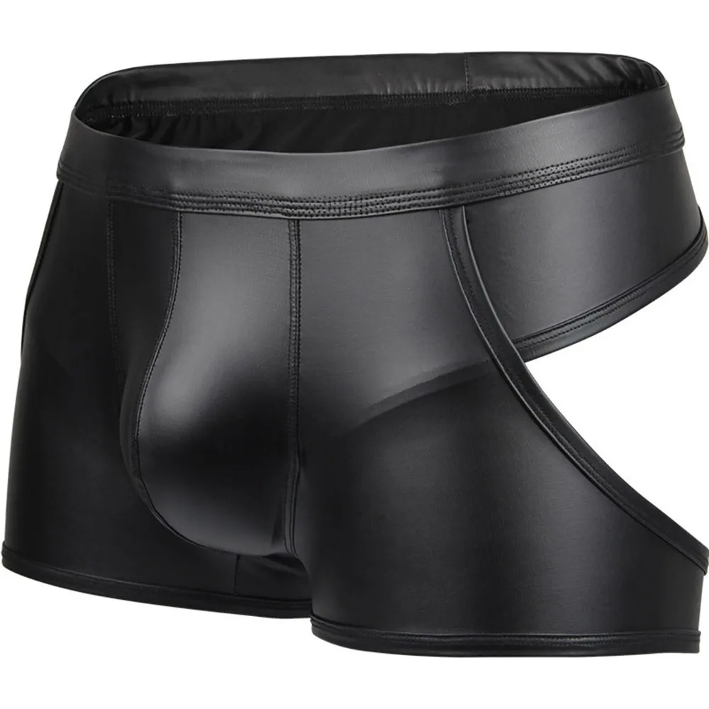 Трусы-боксеры мужские из лакированной кожи, с заниженной талией и вырезами