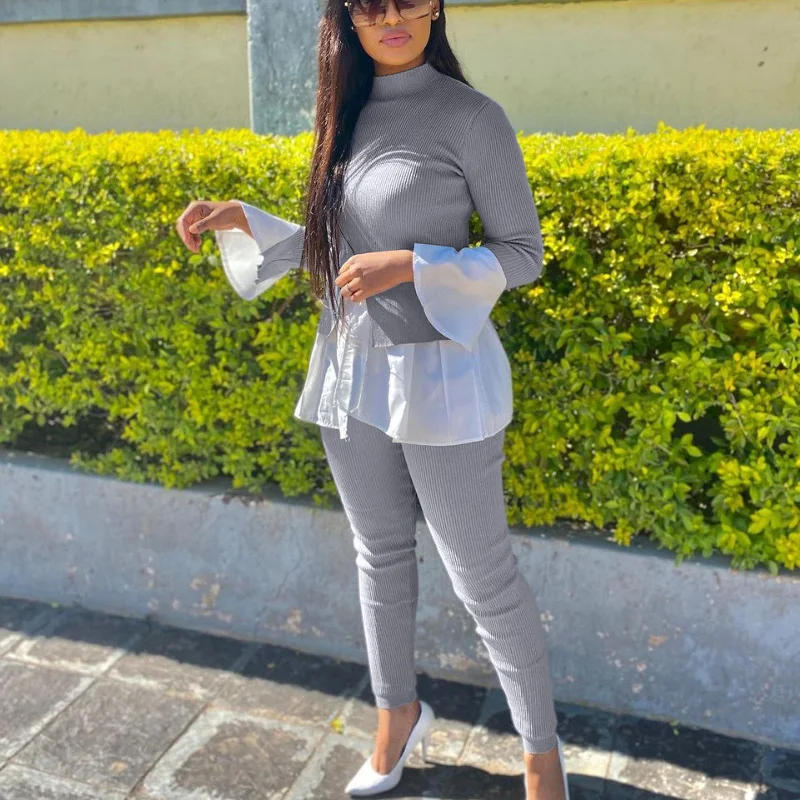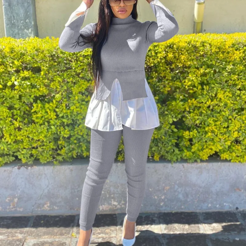 Женский брючный костюм из двух предметов, повседневный облегающий Трикотажный костюм из топа и брюк в стиле пэчворк, весна-осень 2022