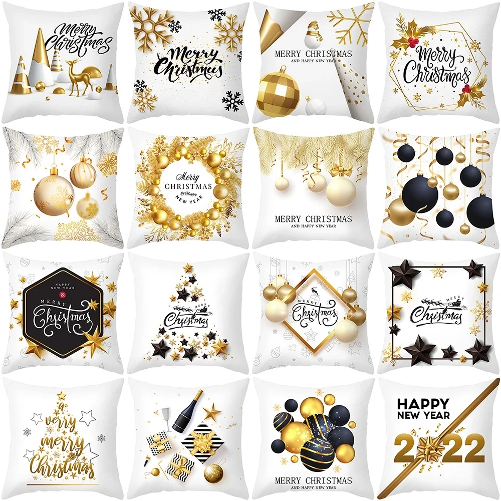 Рождественское украшение для дома, золото черный Чехол на подушку, ...
