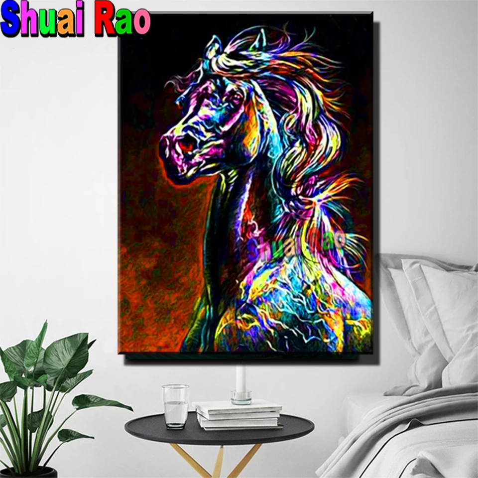 5d Сделай Сам Алмазная Картина Вышивка крестом цвет Готическая лошадь Алмазная вышивка абстрактный животный Единорог узор полный квадрат/круглый