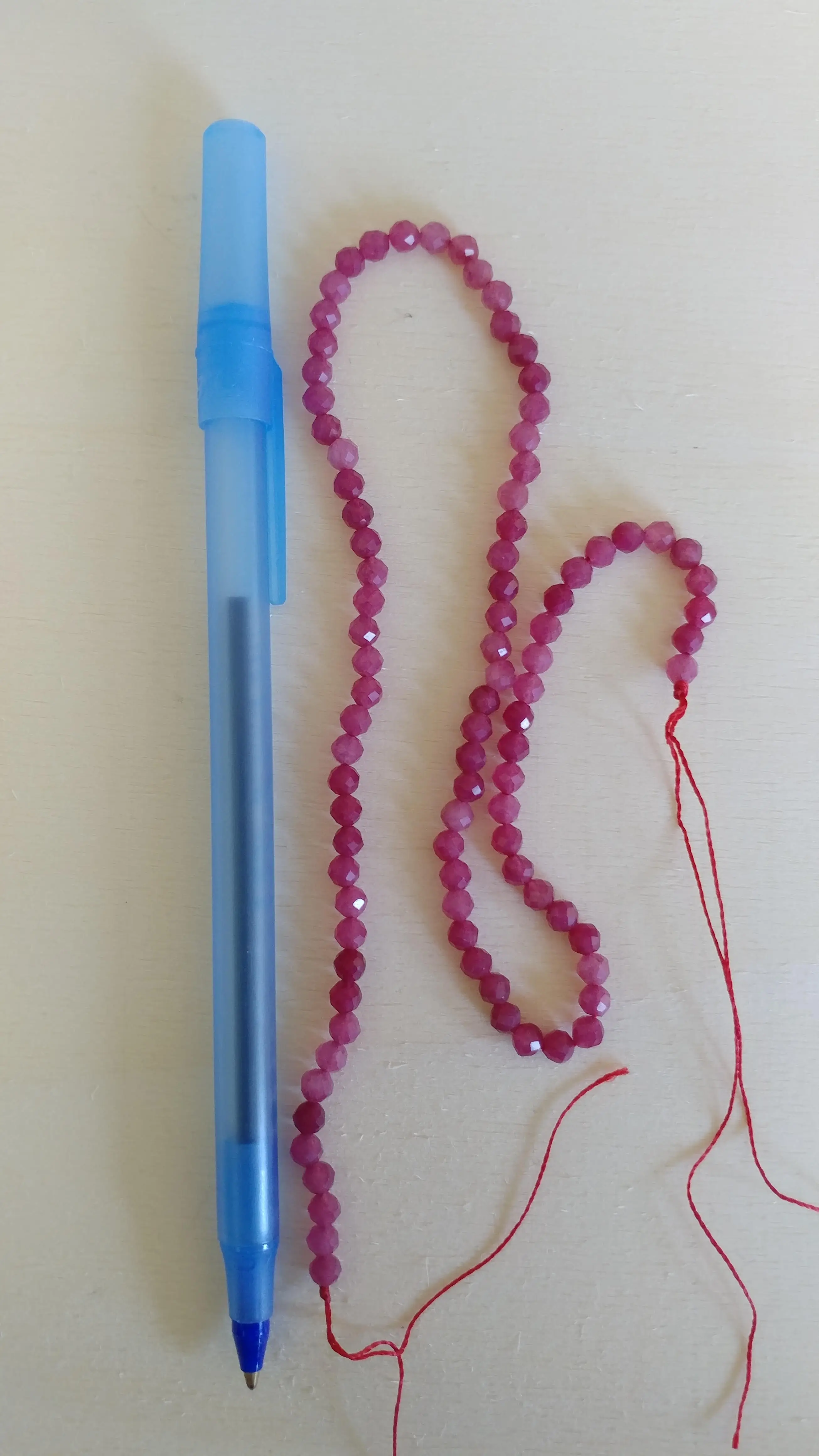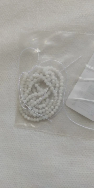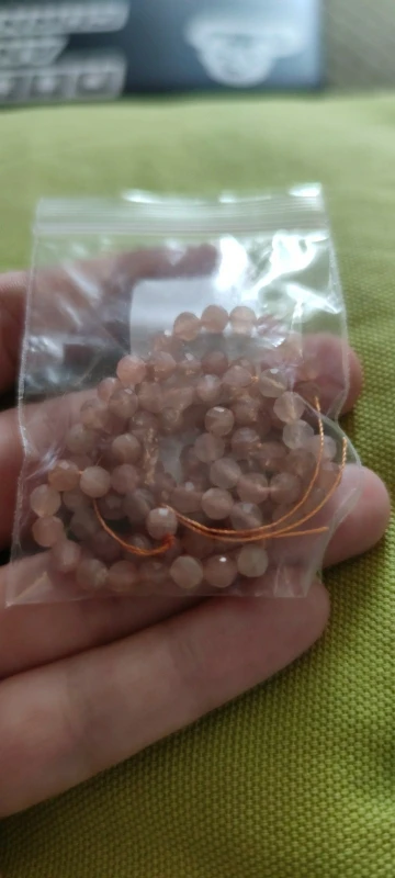 Хорошие бусины, отличаются по цвету, прозрачности, но при этом они всё равно остаются красивыми. В брак уйдёт одна бусина - розоватая с бело-чёрным включением, остальные 115 буду использовать. Длина нити 38 см..