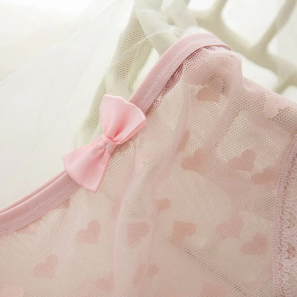 Сексуальные кружевные сетчатые трусики с бантом и принтом Love, Симпатичные персиковые трусики для девушек со средней талией, удобные хлопковые трусики с промежностью